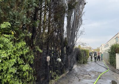 Mit zwei Rohren und zwei Atemschutztrupps konnten wir das Feuer schnell unter Kontrolle bringen. Der Schaden beschränkte sich auf die Hecke und zwei dazwischen stehende Bäume.