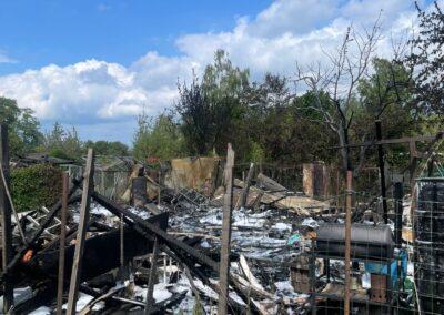 Am vergangenen Sonntag wurden wir zu einem sog. F1, also einem kleineren Feuer, in die Kleingartenanlage am Rot-Weiß Sportplatz alarmiert. Da wir bereits auf der Anfahrt eine große, schwarze Rauchsäule sehen konnten, ließen wir durch die Leitstelle Vollalarm für die Feuerwehr Niedergirmes auslösen. Vor Ort stellten wir fest, dass im hinteren Bereich der Kleingartenanlage mehrere Hütten in Vollbrand standen. Das Feuer drohte auf weitere Gartenhütten überzugreifen. Wir forderten weitere Kräfte aus der Innenstadt und Hermannstein an und bauten eine Wasserversorgung aus der Lahn auf.