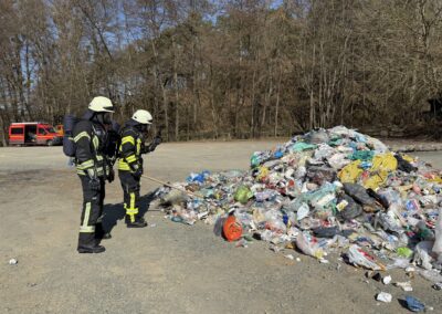 Der Einsatz der Feuerwehr ist beendet, der Betreiber ist zum jetzigen Zeitpunkt damit beschäftigt den ausgekippten Müll wieder aufzuladen und dann der Entsorgung zuzuführen.