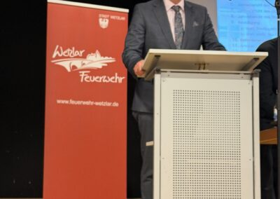 Dr. Sven Holland, Brandschutzdezernent im Regierungspräsidium Giessen, dankte den Einsatzkräften aus der Goethestadt. Auch er ging auf den guten Ausbildungsstand ein und begründete das mit dem Einsatz am Wetzlarer Krankenhaus im Februar 2026. Hier habe aus seiner Sicht alles sehr gut geklappt. Vor allem die sehr gute Zusammenarbeit mit den vielen beteiligten Stellen hob er besonders hervor.