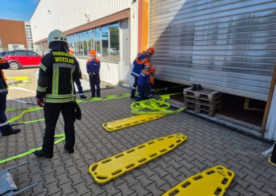Beim Eintreffen der zuerst alarmierten Jugendfeuerwehren aus der Wetzlarer Kernstadt, Garbenheim, Hermannstein und Steindorf stellte sich schnell heraus, dass es sich diesmal nicht um einen Fehlalarm handelte. In dem weitläufigen Gebäudekomplex der Fa. Kurz in der Walter-Zapp-Straße wurden mehrere Personen vermisst, Rauch quoll aus einem Büro und mehrere Notrufe von eingeschlossenen gingen ein. So sah das Übungsszenario aus, dass sich Stadtjugendwart René Kauferstein mit seinem Team aus Jugendwarten und Betreuern ausgedacht hatte.