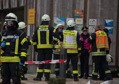 Auch wir waren bei der Großübung des Lahn-Dill-Kreises und der Stadt Wetzlar am vergangenen Samstag dabei. Bei der Katastrophenschutzübung mit der angenommenen Lage „Massenanfall von Verletzten” konnten die Hilfsorganisationen aus dem Lahn-Dill-Kreis und der Stadt Wetzlar gemeinsam üben, wie sie nach einer Explosion im Chemieunterricht schnelle Hilfe für ca. 40 Verletzte leisten können. Die Übung fand an der Theodor-Heuss-Schule statt. Vor Ort mussten Feuerwehr und Rettungsdienste eine große Anzahl an Verletzten schnell versorgen. Gleichzeitig galt es für die Feuerwehr, weitere Verletzte aus dem Gefahrenbereich zu retten und einen möglichen Brand zu löschen. Eine Besonderheit war, dass die Übung zugleich die Abschlussprüfung für die Auszubildenden zum Notfallsanitäter war. Am gleichen Tag fand eine Wiederholung der Übung in Rechtenbach statt.