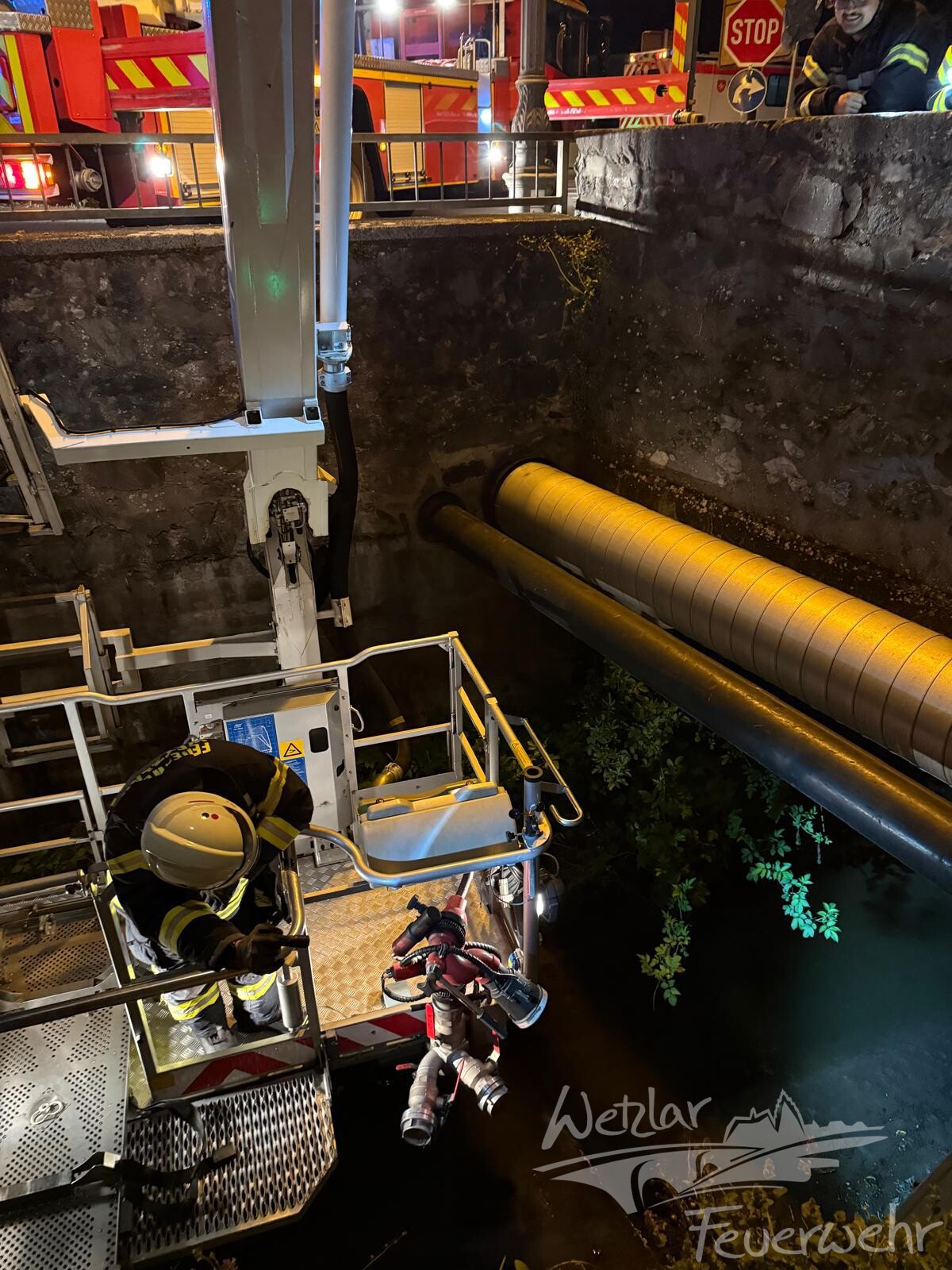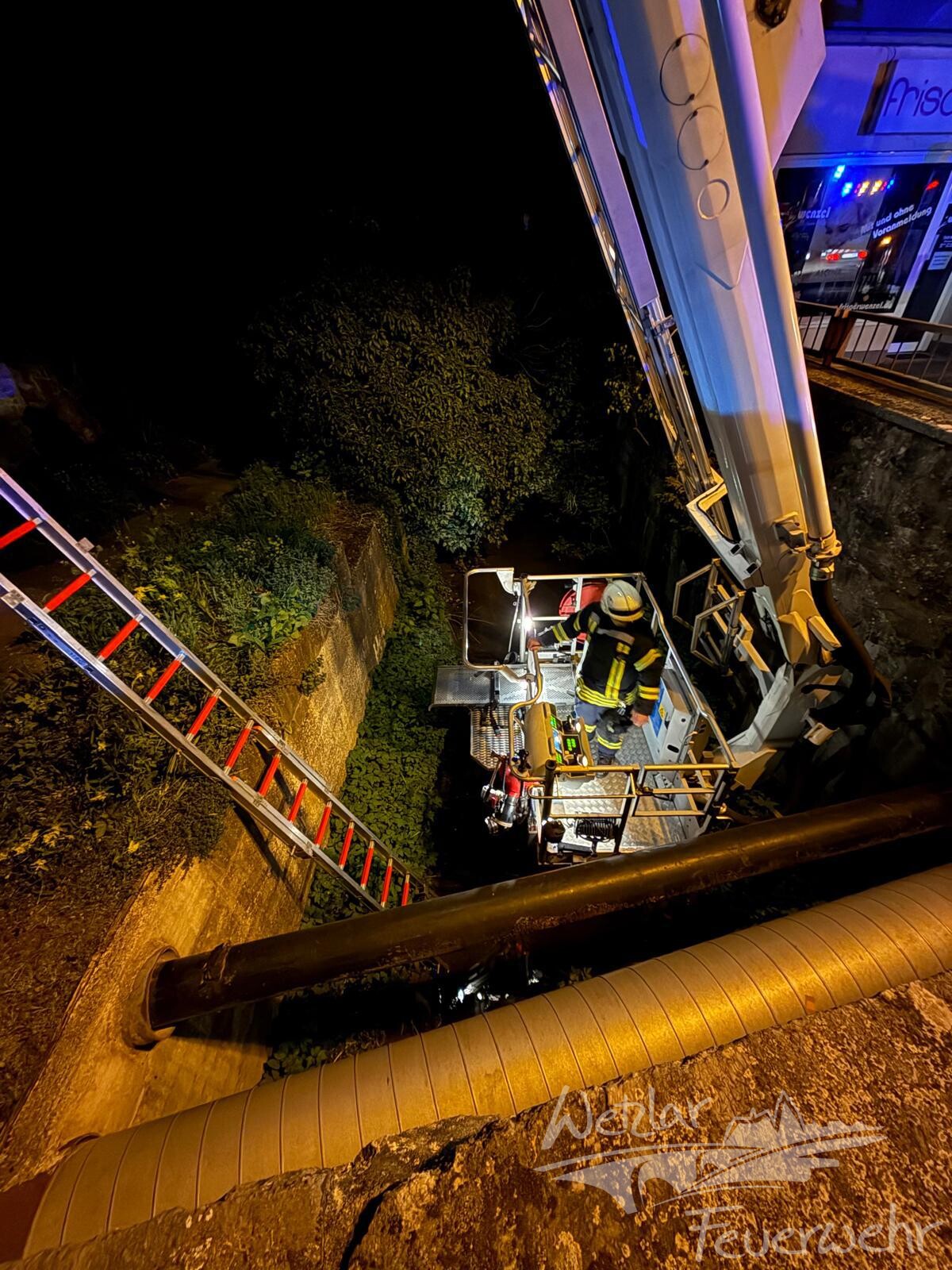 In der Nacht zum Mittwoch stürzte im Bereich des Leitzplatzes eine Person von einer Mauer in den darunterliegenden Wetzbach.